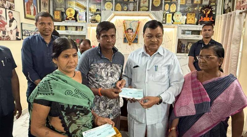 मंत्री लखनलाल देवांगन ने 10 परिवारों को दिए सहायता राशि का चेक