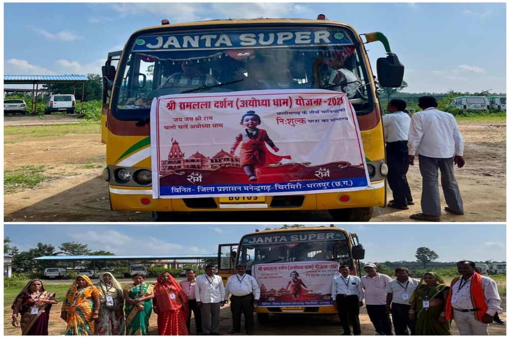 छत्तीसगढ़ शासन की महत्वाकांक्षी श्री रामलला दर्शन योजना के तीसरे चरण में एमसीबी जिले से चयनित 57 श्रद्धालुओं में से 50 श्रद्धालुओं का दल आज सुबह कलेक्टोरेट परिसर, मनेंद्रगढ़ से अयोध्या धाम के लिए रवाना हुआ। श्रद्धालुओं को अंबिकापुर रेलवे स्टेशन से विशेष ट्रेन द्वारा अयोध्या ले जाया जाएगा, जहां वे श्री रामलला के दिव्य दर्शन करेंगे। इस अवसर पर मुख्यमंत्री श्री विष्णुदेव साय ने सभी राम भक्तों को अपनी हार्दिक शुभकामनाएं और बधाई देते हुए कहा कि राज्य शासन द्वारा प्रदेश के श्रद्धालुओं को निःशुल्क अयोध्या धाम ले जाकर श्रीरामलला के दर्शन कराने की यह अनूठी पहल धार्मिक आस्था, संस्कृति और पर्यटन को नया आयाम दे रही है। मुख्यमंत्री ने कहा कि इस योजना से न केवल श्रद्धालुओं की वर्षों पुरानी आकांक्षा पूरी हो रही है बल्कि वे आर्थिक कारणों से जो यात्रा नहीं कर पाते थे, उन्हें भी अयोध्या धाम जाने का अवसर प्राप्त हो रहा है। श्रद्धालुओं ने इस योजना के लिए मुख्यमंत्री और जिला प्रशासन के प्रति आभार व्यक्त करते हुए कहा कि यह उनके लिए सपने के सच होने जैसा है। श्री रामलला दर्शन योजना के अंतर्गत श्रद्धालुओं को संपूर्ण पैकेज की सुविधा दी जा रही है, जिसमें छत्तीसगढ़ से अयोध्या तक यात्रा, रहने की व्यवस्था, मंदिर दर्शन, नाश्ता और भोजन की व्यवस्था शामिल है। श्रद्धालुओं की सुरक्षा और सुविधा को ध्यान में रखते हुए ट्रेन में टूर एक्सपर्ट, सुरक्षा कर्मी और चिकित्सकों का दल भी साथ रहेगा।