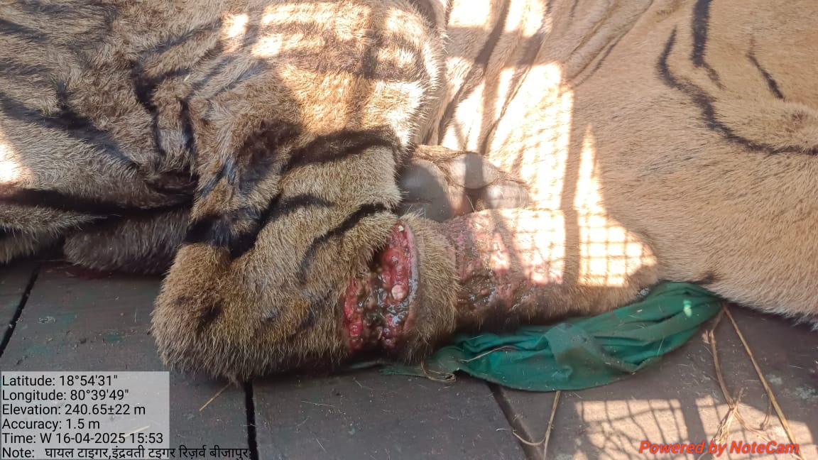इम्पेक्ट न्यूज। रायपुर/बीजापुर, 17 अप्रैल 2025: छत्तीसगढ़ के बीजापुर जिले में इंद्रावती टाइगर रिजर्व के बफर जोन में एक 5-6 वर्षीय बाघ को गंभीर रूप से घायल अवस्था में रेस्क्यू किया गया है। शिकारियों द्वारा लगाए गए तार के फंदे में फंसने से बाघ के दोनों पिछले पैर बुरी तरह जख्मी हो गए, जिसके घावों में सड़न और कीड़े पड़ गए। इस घटना ने क्षेत्र में सक्रिय महाराष्ट्र के शिकारी गिरोह और स्थानीय सहयोगियों की गतिविधियों को उजागर किया है। घटना का विवरणयह घटना बीजापुर बफर रेंज के कांदुलनार, मोरमेड़,