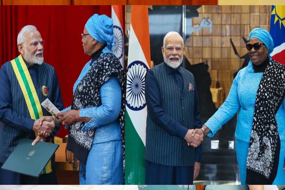 मुख्यमंत्री डॉ. मोहन यादव ने प्रधानमंत्री नरेन्द्र मोदी को नामीबिया के सर्वोच्च नागरिक सम्मान 'द ऑर्डर ऑफ द मोस्ट एन्सेंट बिल्विट्सचिआ मिराबिल्स"(The Order of the Most Ancient Welwitschia Mirabilis') मिलने पर हार्दिक बधाई दी है। मुख्यमंत्री डॉ. यादव ने कहा कि यह प्रतिष्ठित सम्मान भारत-नामीबिया के मध्य सशक्त होते संबंधों की अद्वितीय अभिव्यक्ति है। मुख्यमंत्री डॉ. यादव ने प्रधानमंत्री मोदी का अभिनंदन करते हुए कहा कि समस्त राष्ट्रवासियों को भारत की इस उपलब्धि पर अत्यंत गर्व हो रहा है।