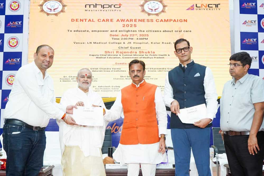 राजधानी भोपाल स्थित एलएन मेडिकल कॉलेज और जेके हॉस्पिटल परिसर में आज 22 जुलाई को 'मास्टर हेल्थ प्रो' (Master Health Pro) के तत्वावधान में ‘डेंटल केयर अवेयरनेस कैंपेन 2025’ का शुभारंभ हुआ। इस जनहितैषी कार्यक्रम का उद्देश्य लोगों को मौखिक स्वास्थ्य के प्रति जागरूक करना रहा।