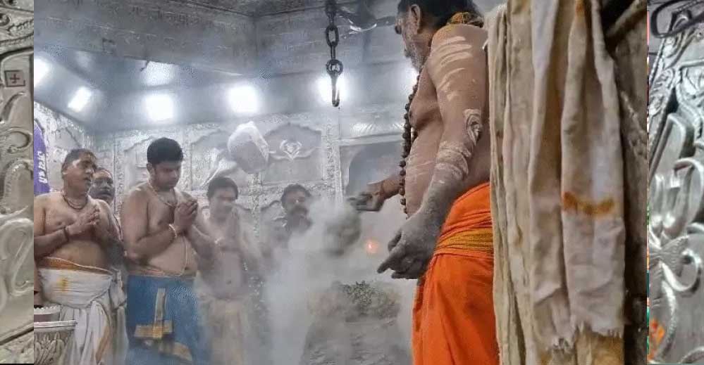 इसके बाद सभा मंडप में वीरभद्र जी के कान में स्वस्ति वाचन किया गया। फिर भगवान से आज्ञा लेकर चांदी का पट खोला गया। जल से भगवान महाकाल का अभिषेक करने के पश्चात दूध, दही, घी, शक्कर, शहद और फलों के रस से बने पंचामृत से पूजन किया गया। भगवान महाकाल का रजत चंद्र, त्रिशूल, मुकुट और आभूषण के साथ भांग, चंदन और ड्रायफ्रूट से श्रृंगार किया गया। इसके बाद भस्म चढ़ाई गई। महाकाल ने शेषनाग का मुकुट, रजत मुंडमाल और रुद्राक्ष की माला के साथ-साथ सुगंधित पुष्प से बनी फूलों की माला धारण की। इसके बाद फल और मिष्ठान का भोग लगाया।