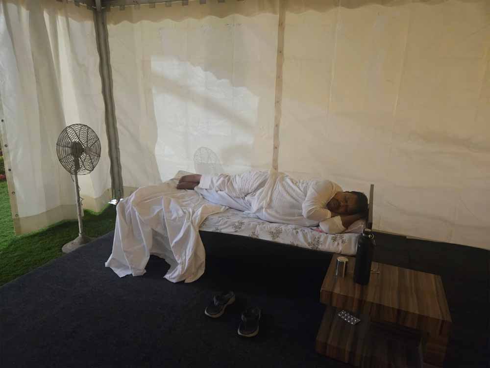 ऊर्जा मंत्री प्रद्युम्न सिंह तोमर ने भोपाल में टेन्ट में किया रात्रि विश्राम