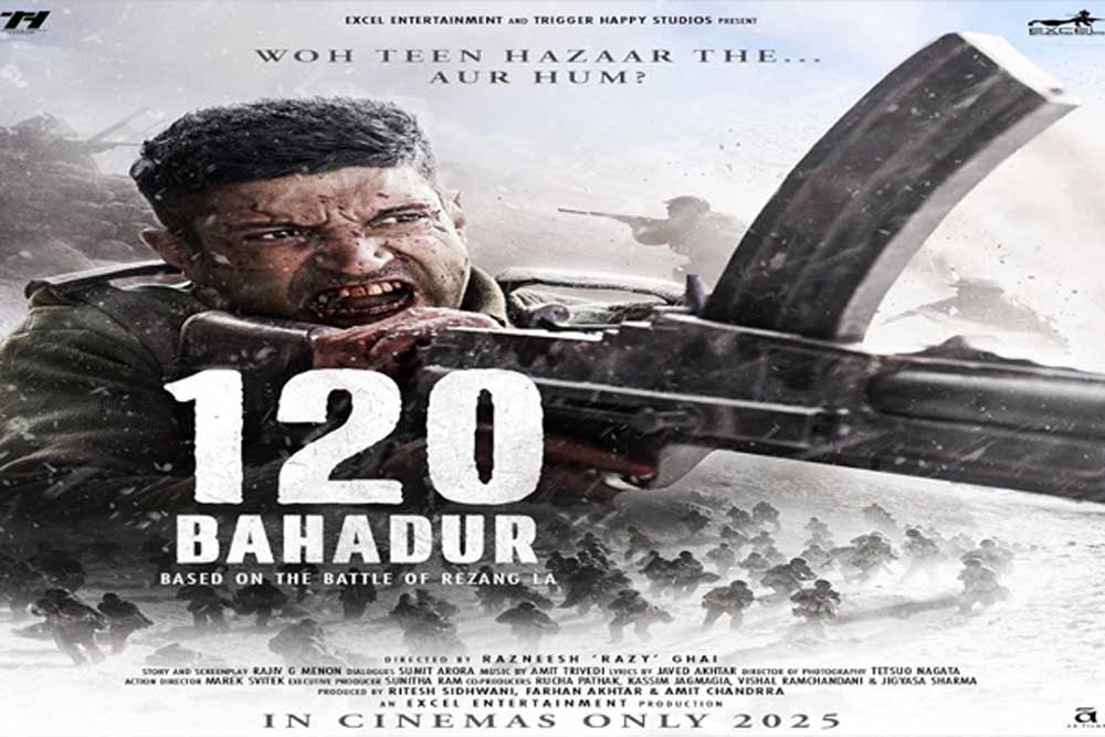 बॉलीवुड फिल्मकार और अभिनेता फरहान अख्तर अपनी आने वाली फिल्म '120 बहादुर' के टीजर की रिलीज से पहले जोधपुर का दौरा करेंगे और मेजर शैतान सिंह को श्रद्धांजलि देंगे। फरहान अख्तर की आने वाली वॉर फिल्म 120 बहादुर दर्शकों को रेजांग ला की कठिन वादियों में लेकर जाएगी, जो भारतीय सैन्य इतिहास के सबसे बहादुर लेकिन कम जानें जाने वाले किस्सों में से एक है। वर्ष 1962 में भारत-चीन युद्ध के दौरान हुए ऐतिहासिक रेजांग ला की लड़ाई पर बनी इस फिल्म में 13 कुमाऊं रेजिमेंट के 120 जवानों की कहानी दिखाई जाएगी, जिन्होंने 16,000 फीट की ऊंचाई पर पूरी चीनी बटालियन का मुकाबला किया था। इस फिल्म का टीज़र 02 अगस्त को रिलीज होगा।