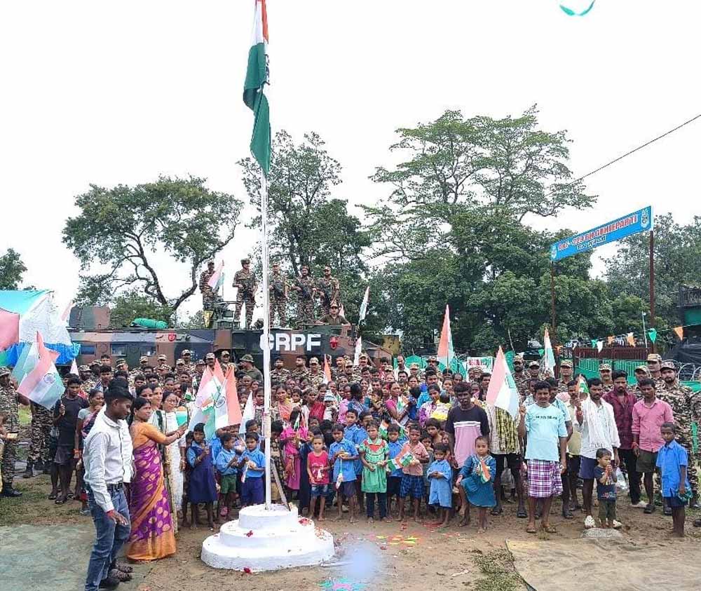 आज़ादी के 78 साल बाद बस्तर के उन गांवों में तिरंगा शान से लहराया, जहाँ अब तक नक्सलियों का लाल झंडा ही ताक़त और खौफ का प्रतीक माना जाता था। स्वतंत्रता दिवस के अवसर पर बीजापुर, नारायणपुर और सुकमा जिलों के 29 गांवों में पहली बार राष्ट्रीय ध्वज फहराया गया। दशकों से बंदूकों की नली और डर के साए में जी रहे इन गांवों में तिरंगे का फहराया जाना केवल एक आयोजन नहीं, बल्कि बदलते बस्तर की ऐतिहासिक तस्वीर है। यह तस्वीर दर्शाती है कि सुरक्षा बलों के त्याग, सरकार की दृढ़ इच्छाशक्ति और ग्रामीणों की उम्मीद ने मिलकर नक्सलवाद के गढ़ माने जाने वाले इलाकों में शांति और विकास का मार्ग प्रशस्त किया है। इन गांवों में तिरंगा फहराना उस ऐतिहासिक बदलाव का प्रमाण है, जो सुरक्षा बलों के साहस, राज्य और केंद्र सरकार की दृढ़ इच्छाशक्ति तथा सबसे बढ़कर ग्रामीणों के धैर्य और विश्वास से संभव हुआ है। बीजापुर जिले के कोंडापल्ली, जीड़पल्ली, वाटेवागु, कर्रेगुट्टा, पिड़िया, पुजारीकांकेर और भीमारम जैसे गांव; नारायणपुर जिले के गारपा, कच्चापाल, बेड़माकोट्टी, कांदूलनार, रायनार सहित कई गांव; तथा सुकमा जिले के गोमगुड़ा, गोल्लाकुंडा, नुलकातोंग और उसकावाया जैसे नक्सल प्रभावित इलाकों में आज़ादी के बाद पहली बार तिरंगे का फहरना एक ऐतिहासिक मील का पत्थर है।