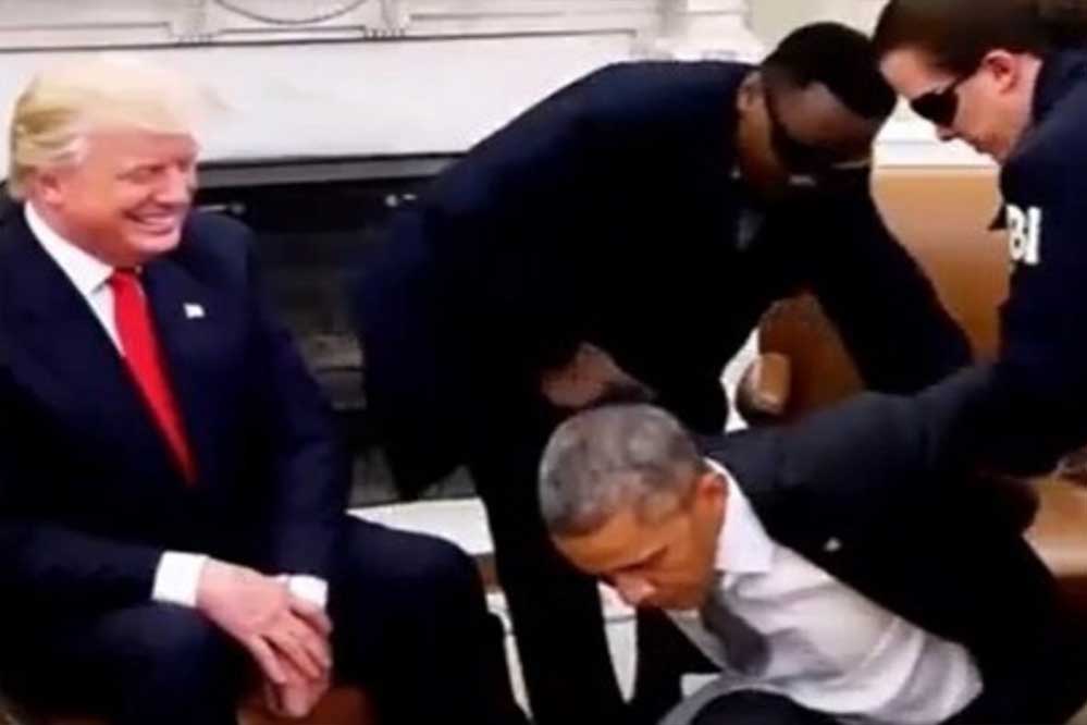 अमेरिका के राष्ट्रपति डोनाल्ड ट्रंप ने एक नया विवाद खड़ा कर दिया है. ट्रंप ने हाल ही में अपने सोशल मीडिया प्लेटफॉर्म Truth Social पर एक AI-जनरेटेड वीडियो शेयर किया, जिसमें पूर्व राष्ट्रपति बराक ओबामा को FBI एजेंट्स द्वारा ओवल ऑफिस में गिरफ्तार करते हुए दिखाया गया है. वीडियो में ओबामा के हाथ को बांधकर उन्हें ट्रंप के कदमों में झुका हुआ दिखाया गया है.