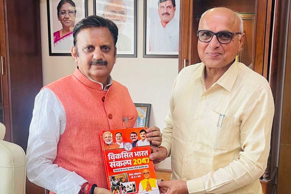 उप मुख्यमंत्री शुक्ल को सांसद डॉ. मिश्रा ने “विकसित भारत संकल्प-2047” पुस्तक भेंट की