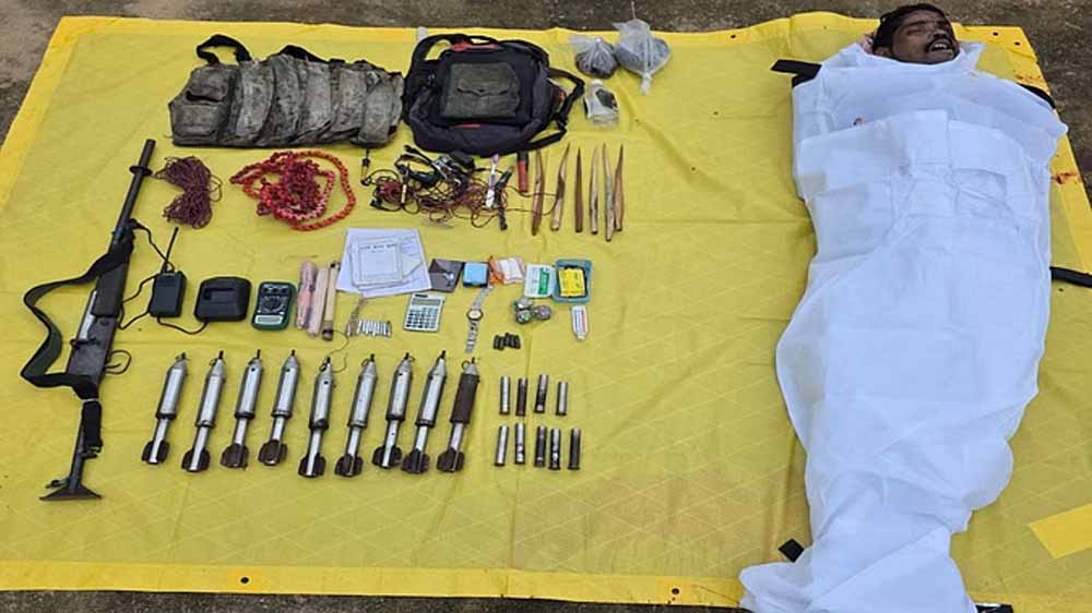 मुठभेड़ में पांच लाख का इनामी नक्सली ढेर, भारी मात्रा में विस्फोटक बरामद
