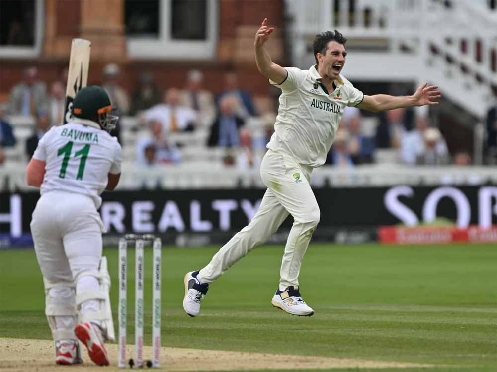 ऑस्ट्रेलिया और दक्षिण अफ्रीका के बीच विश्व टेस्ट चैंपियनशिप का फाइनल खेला जा रहा है। ऑस्ट्रेलिया ने पहली पारी में 212 रन बनाए। इसके जवाब में दक्षिण अफ्रीका की पारी भी लड़खड़ाई है। पहले दिन का खेल समाप्त होने के समय दक्षिण अफ्रीका ने 22 ओवर में 43 रन के स्कोर पर अपने चार विकेट गवां दिये थे। वहीं दूसरे पहले सेशन में ऑस्ट्रेलिया के कप्तान पैट कमिंस ने अफ्रीका के कप्तान तेम्बा बावुमा को पवेलियन का रास्ता दिखाते हुए एक बड़ी उपलब्धि हासिल की।