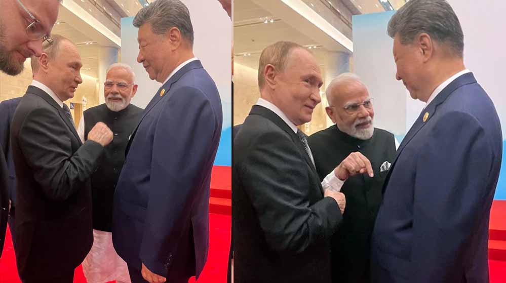 चीन के तियानजिन में सोमवार सुबह नए वर्ल्ड ऑर्डर के तीन दिग्गजों की मुलाकात हुई. SCO मीटिंग के दौरान आज सुबह प्रधानमंत्री नरेंद्र मोदी, मेजबान चीन के राष्ट्रपति शी जिनपिंग और रूस के राष्ट्रपति पुतिन मिले. तीन नेताओं की गर्मजोशी भरी मुलाकात की ये तस्वीरें अमेरिकी राष्ट्रपति डोनाल्ड ट्रंप का ब्लड प्रेशर बढ़ा सकती है.
