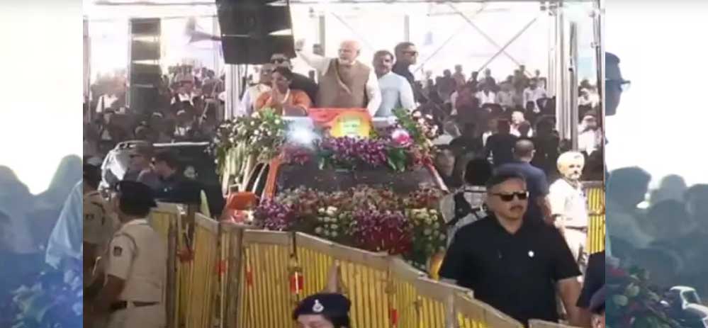 धार में पीएम मोदी का भव्य स्वागत, खुली जीप से पहुंचे कार्यक्रम स्थल