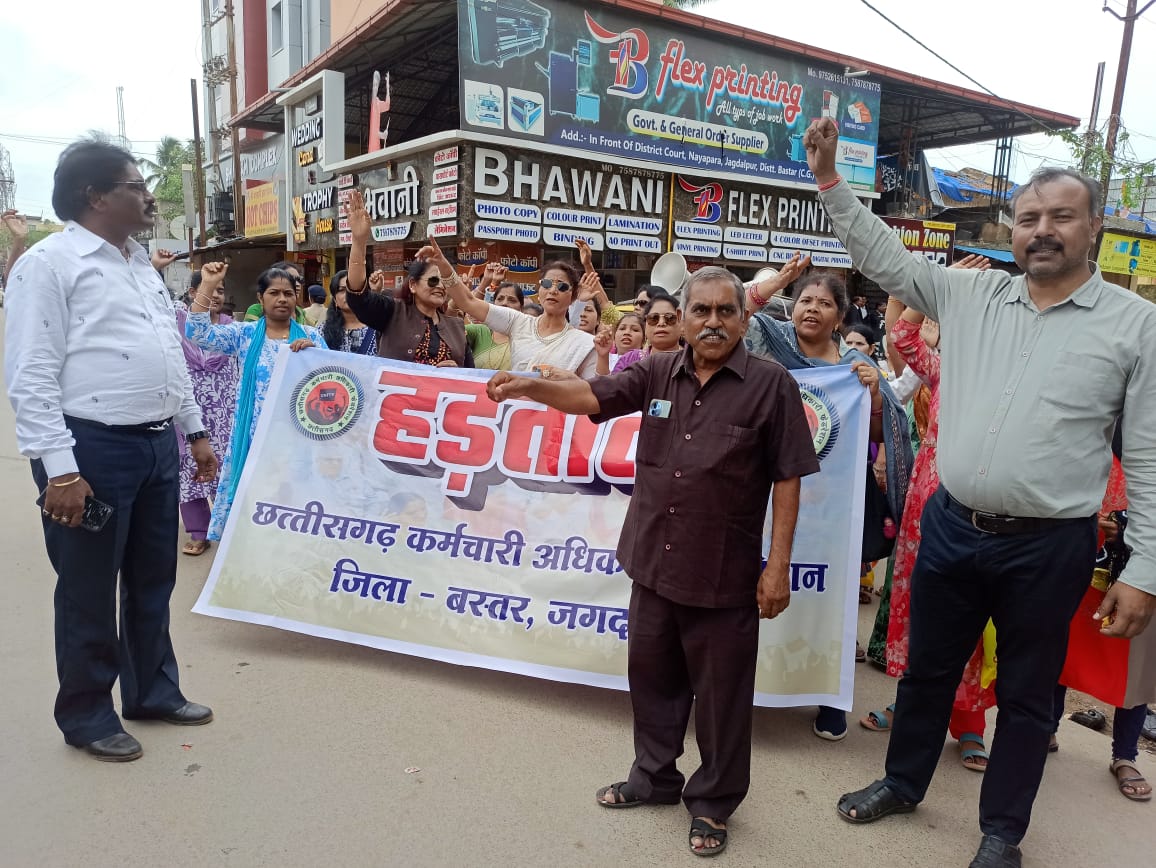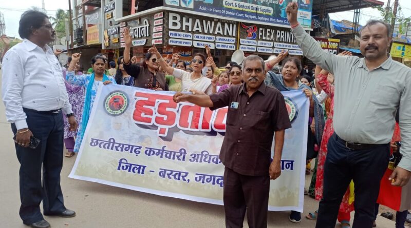 इम्पेक्ट न्यूज़।रायपुर/जगदलपुर। मोदी की गारंटी पूरा करने को लेकर छत्तीसगढ़ कर्मचारी अधिकारी फेडरेशन के प्रांतीय आह्वान पर कलम रख मशाल उठा आंदोलन के दूसरे चरण में आज 22 अगस्त 25 को पूरे प्रदेश के समस्त 33 जिला मुख्यालय में सरकारी कर्मियों ने पूरी तरह कामकाज ठप कर एक दिन की हड़ताल किया। विदित हो कि फेडरेशन के पूर्व निर्धारित बहुत बड़े आंदोलन को देखते हुए छत्तीसगढ़ सरकार ने दो दिन पूर्व ही सरकारी कर्मियों के महंगाई भत्ता में 2% की वृद्धि की घोषणा की। केवल 2% महंगाई भत्ता की घोषणा