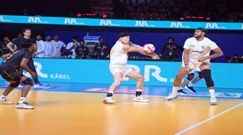 हैदराबाद आरआर केबल प्राइम वॉलीबॉल लीग पावर्ड बाय स्कैपिया मुकाबले में अहमदाबाद डिफेंडर्स ने गत चैंपियन कालीकट हीरोज को 12-15, 15-12, 15-12, 16-14 से हरा दिया। बत्तूर बत्सुरी को प्लेयर ऑफ द मैच चुना गया। आज यहां गाचीबोवली इंडोर स्टेडियम में खेले गए मैच में अशोक बिश्नोई और शमीमुद्दीन ने शुरुआत में ही अंगमुथु के आक्रमण का मुकाबला करने के लिए टू-मैन ब्लॉक लाइन बनाई। डिफेंडर्स की बैक लाइन ने कालीकट के अटैक्स से निपटने के लिए अपने पास शानदार ढंग से वितरित किए। शॉन टी जॉन की अनुपस्थिति में,