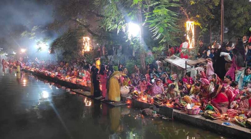 आमातालाब के घाट पर उगते सूर्य को छठ व्रतियों ने दी उषा अर्घ्य देकर 4 दिवसीय पवित्र अनुष्ठान का समापन किया