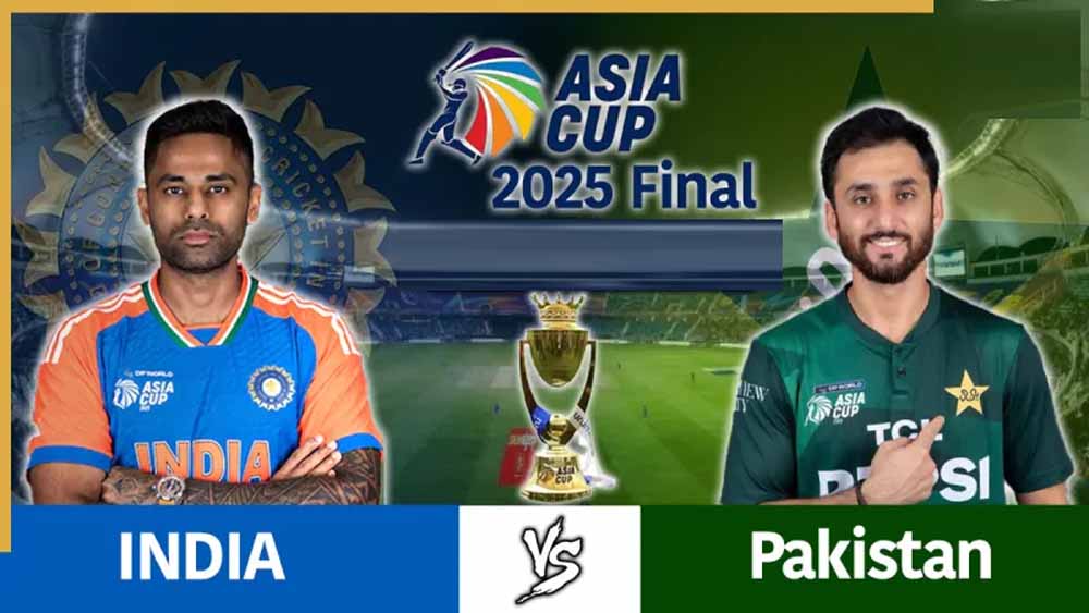 दुबई एशिया कप 2025 के फाइनल में टीम इंडिया की भिड़ंत पाकिस्तान के साथ हो रही है। भारतीय कप्तान सूर्यकुमार यादव ने टॉस जीतकर पहले गेंदबाजी करने का फैसला किया है। 41 साल में यह पहला मौका है जब भारत-पाकिस्तान के बीच इस टूर्नामेंट का खिताबी मुकाबला खेला जाना है। फाइनल मैच दुबई इंटरनेशनल क्रिकेट स्टेडियम में खेला जाना है। जीत के विजय रथ पर सवार टीम इंडिया सूर्यकुमार यादव की कप्तानी में भारतीय टीम जीत के विजय रथ पर सवार है और अभी तक टूर्नामेंट में अजेय रही है।