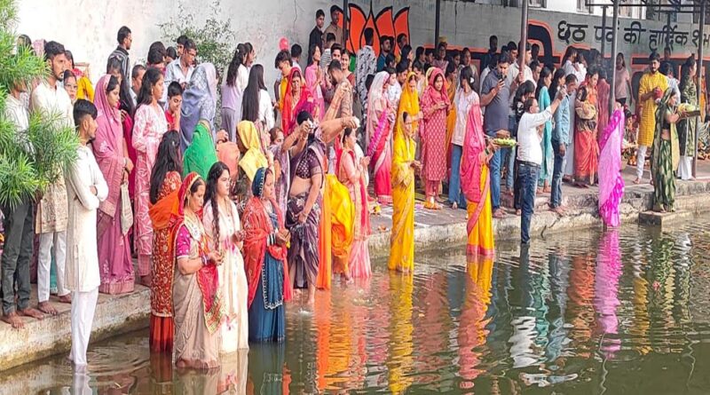 लोक आस्था के पर्व छठ पर महिलाओं ने अस्ताचलगामी सूर्य को दिया अर्घ्य, आमातालाब छठ घाट पर उमड़े श्रद्धालु