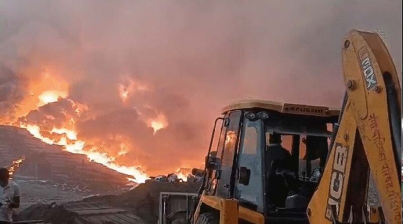 मंदसौर में भीषण आग, आसपास के गांवों में अलर्ट, जल जीवन मिशन के पाइप खाक