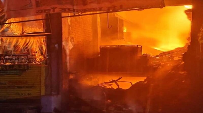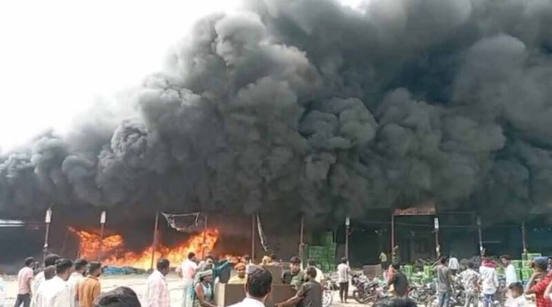 सब्जी मंडी में भीषण आग: लाखों का नुकसान, फायर ब्रिगेड की दमकल कर रही आग बुझाने के प्रयास