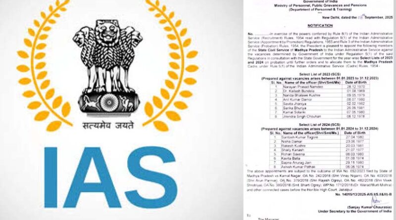 बड़ी खुशी! मध्य प्रदेश के 16 प्रशासनिक अफसरों को मिला IAS अवार्ड, केंद्र ने जारी किया नोटिफिकेशन
