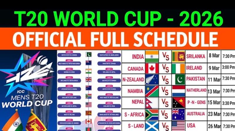 मुंबई ICC टी20 वर्ल्ड कप 2026 के शेड्यूल का ऐलान मंगलवार (24 नवंबर) को हुआ. टी20 वर्ल्ड कप की शुरुआत 7 फरवरी से होगी. यह 8 मार्च तक चलेगा. वर्ल्ड कप भारत-श्रीलंका की संयुक्त मेजबानी में होना है. वर्ल्ड का कप के शेड्यूल का ऐलान ICC (इंटरनेशनल क्रिकेट काउंसिल) चेयरमैन जय शाह और पूर्व भारतीय कप्तान रोहित शर्मा, टी20 कप्तान सूर्यकुमार यादव, महिला टीम की कप्तान हरमनप्रीत कौर की मौजूदगी में हुआ. टूर्नामेंट का आगाज 7 फरवरी को हो रहा है. 7 फरवरी को कुल 3 मैच होने हैं. पहला