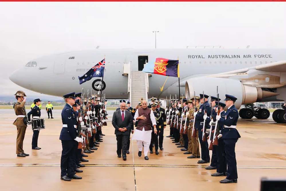 नई दिल्ली रक्षा मंत्री राजनाथ सिंह इन दिनों ऑस्‍ट्रेलिया के दौरे पर हैं, जहां तीन बड़े रक्षा समझौते किए गए हैं. भारत ने क्‍वाड (Quad) पर कैनबरा से अमेरिकी राष्‍ट्रपति डोनाल्‍ड ट्रंप को करारा जवाब दिया है. ट्रंप ने क्‍वाड में अमेरिकी भागीदारी पर उदासीनता को कई बार स्‍पष्‍ट रूप से जताया है. वहीं, भारत क्‍वाड के अन्‍य सदस्‍य देशों (ऑस्‍ट्रेलिया और जापान) के साथ ही इस जोन के अन्‍य महत्‍वपूर्ण देशों (जैसे दक्षिण कोरिया) के साथ अपने रक्षा और रणनीतिक संबंधों को नई ऊंचाई दे रहा है. बता दें