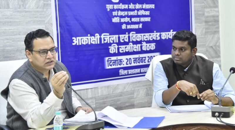 रायपुर नीति आयोग द्वारा नियुक्त बस्तर जिले के नोडल अधिकारी एवं संयुक्त सचिव शोभित जैन ने बस्तर आकांक्षी जिला और ब्लॉक कार्यक्रमों की प्रगति की समीक्षा बैठक जिला कार्यालय के आस्था सभाकक्ष में ली। बैठक में कलेक्टर हरिस एस ने जिले और ब्लॉक में आकांक्षी कार्यक्रम के अंतर्गत योजनाओं के क्रियान्वयन के संबंध में विस्तृत जानकारी दी और समस्याओं के संबंध में भी अवगत करवाया। संयुक्त सचिव जैन ने आकांक्षी जिला कार्यक्रम के तहत निर्धारित जिला एवं ब्लॉक स्तरीय चयनित इंडिकेटर्स की वर्तमान स्थिति, क्रियान्वयन और प्रगति पर विस्तृत चर्चा
