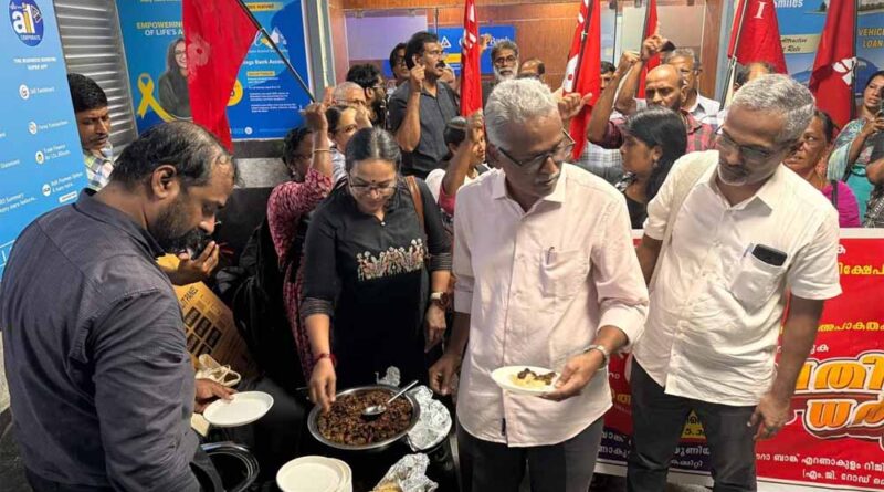तिरुवनंतपुरम केरल में एक चौंकाने वाला मामला सामने आया है। यहां कोच्चि के एक बैंक में मैनेजर ने कैंटीन में बीफ पर प्रतिबंध लगा दिया। इसके विरोध में बैंक कर्मचारियों ने बीफ पार्टी का आयोजन कर डाला। जानकारी के मुताबिक बैंक के रीजनल मैनेजर मूल रूप से बिहार के रहने वाले हैं। उनकी हाल ही में केरल के कोच्चि स्थित बैंक की शाखा में नियुक्ति हुई है। बैंक एम्प्लॉइज फेडरेशन ऑफ इंडिया (BEFI) के सदस्यों ने अधिकारियों के कथित मानसिक उत्पीड़न को लेकर मैनेजर के खिलाफ विरोध प्रदर्शन करने की