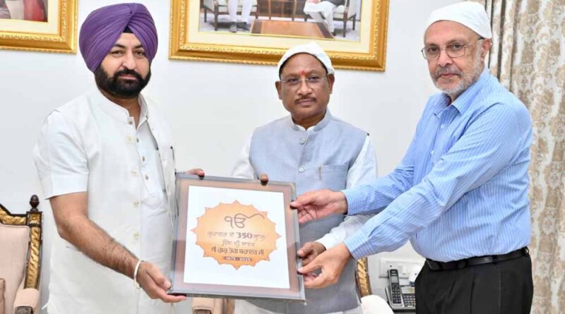 रायपुर, मुख्यमंत्री विष्णु देव साय से आज उनके निवास कार्यालय में पंजाब सरकार के राजस्व, पुनर्वास एवं आपदा प्रबंधन मंत्री हरदीप सिंह मुण्डियन और स्वास्थ्य एवं परिवार कल्याण मंत्री डॉ. बलबीर सिंह ने सौजन्य मुलाकात की। मुलाकात के दौरान दोनों मंत्रियों ने मुख्यमंत्री साय को 9वें सिख गुरु गुरु तेग बहादुर जी के 350वें शहीदी दिवस के उपलक्ष्य में आयोजित होने वाले विशेष कार्यक्रम में शामिल होने के लिए आमंत्रित किया। उन्होंने बताया कि यह आयोजन गुरु तेग बहादुर जी के बलिदान, त्याग और मानवता के प्रति उनके संदेश को