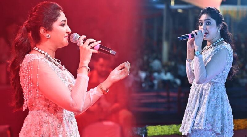 संगीत की सुरमयी शाम में झूम उठा राज्योत्सव मैदान रायपुर छत्तीसगढ़ रजत महोत्सव की सांस्कृतिक संध्या में सोमवार की रात संगीत, नृत्य और लोक संस्कृति का अनोखा संगम देखने को मिला। बॉलीवुड की ख्यातनाम पार्श्व गायिका भूमि त्रिवेदी ने अपनी मनमोहक आवाज़ से दर्शकों को झूमने पर मजबूर कर दिया। उन्होंने “ससुराल गेंदा फूल”, “सैय्यारा”, “राम चाहे लीला”, “झुमका गिरा रे” “जय-जय शिवशंकर-कांटा लगे न कंकड़”, “होली खेले रघुवीरा”, “रंग बरसे”, “ये देश है वीर जवानों का”..”डम-डम ढोल बाजे”, “उड़ी-उड़ी जाएं” जैसे लोकप्रिय गीतों को अपने नए अंदाज़ में प्रस्तुत