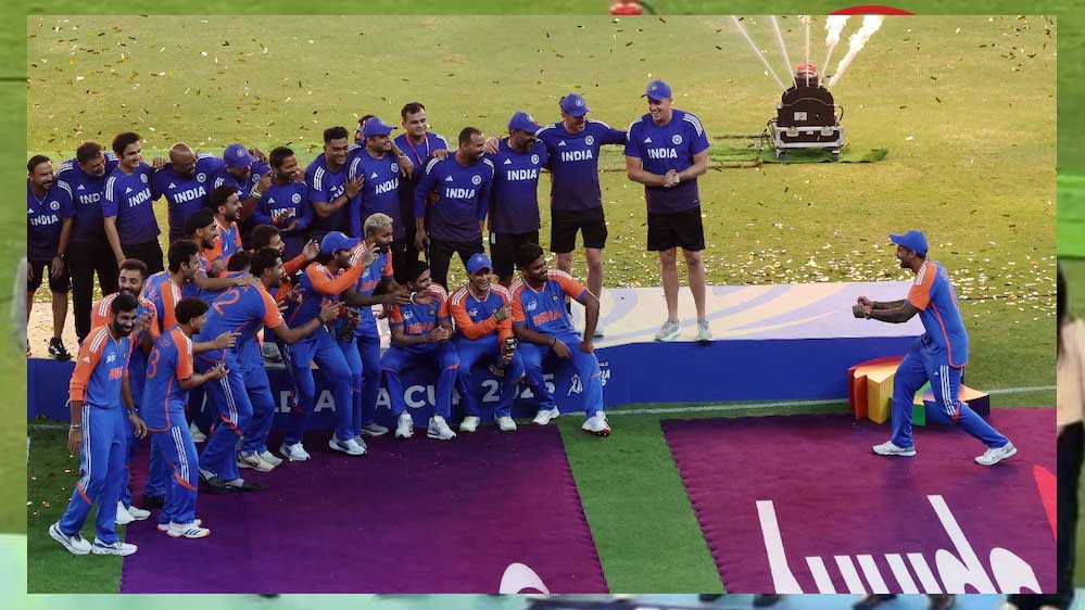 दुबई एशिया कप 2025 फाइनल में भारत ने रविवार (28 सितंबर) को पाकिस्तान को पांच विकेट धूल चटा दी. लेकिन इस जीत का बाद भी टीम इंडिया ने सेलिब्रेशन उस अंदाज में नहीं हो सका, जिसके बादे में फैन्स सोच रहे थे. हालांकि फिर भी टीम इंडिया के टी20 कप्तान सूर्यकुमार यादव ने जिस तरह से विनिंग सेलिब्रेशन कर दिखाया. उससे रोहित शर्मा याद आ गए. दरअसल, सूर्या ने अदृश्य एशिया कप की ट्रॉफी के जो सेलिब्रेशन किया, वो आने वाले कई सालों तक याद रखा जाएगा. टीम इंडिया ने