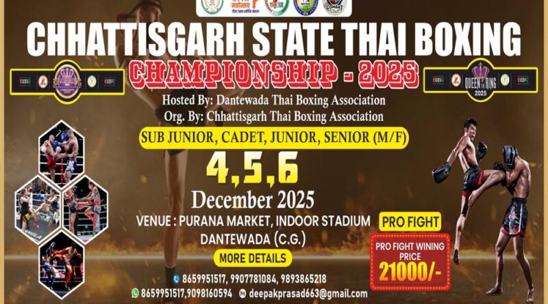 छत्तीसगढ़ दंतेवाड़ा में 5_6 दिसंबर को थाई बॉक्सिंग का आगाज़ :जिला प्रशासन कार्यक्रम को सफल बनाने में जुटी