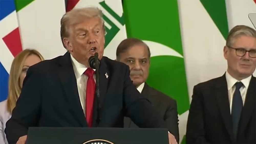 इस दौरान ट्रंप ने गाजा शांति शिखर सम्मेलन में कहा कि यह मध्य पूर्व से परे दुनिया के इतिहास में एक महत्वपूर्ण क्षण है। हम सभी इस बात पर सहमत हैं कि गाजा का समर्थन लोगों के उत्थान के लिए ही किया जाना चाहिए। लेकिन हम अतीत में हुए रक्तपात, घृणा या आतंक से जुड़ी किसी भी चीज को वित्तपोषित नहीं करना चाहते। हम इस बात पर भी सहमत हैं कि गाजा के पुनर्निर्माण के लिए यह आवश्यक है कि इसे विसैन्यीकृत किया जाए और गाजा में लोगों के लिए सुरक्षित वातावरण बनाने के लिए एक नए ईमानदार नागरिक पुलिस बल की स्थापना की जाए। मैं एक बेहतर भविष्य सुनिश्चित करने में भागीदार बनने का इरादा रखता हूं। उम्मीद है कि तीसरा विश्व युद्ध नहीं होगा, लेकिन यह मध्य पूर्व में शुरू नहीं होने वाला है। हम तीसरा विश्व युद्ध नहीं लड़ेंगे।