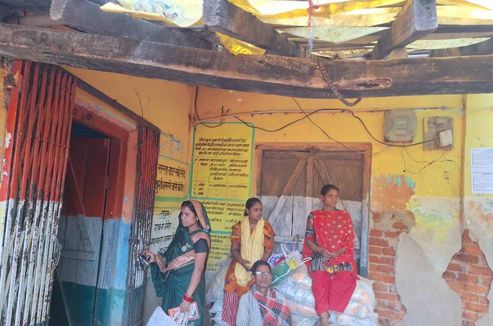 जान जोखिम में डालकर राशन लेने पहुंच रहे ग्रामीण, जर्जर भवन में संचालित है राशन दुकान